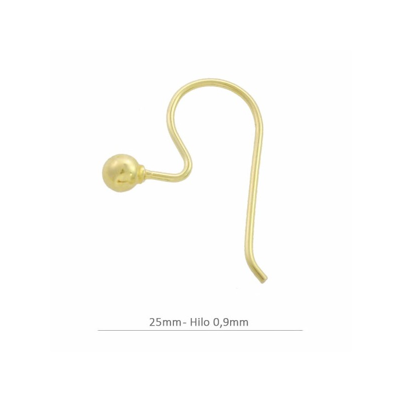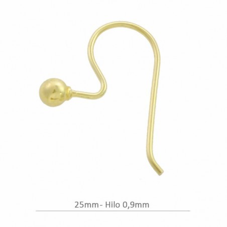 Crochet avec boule, argent avec un placage d’or. Le sac contient 2 unités. La taille est de 24x10 mm. et la balle est de 4 mm.