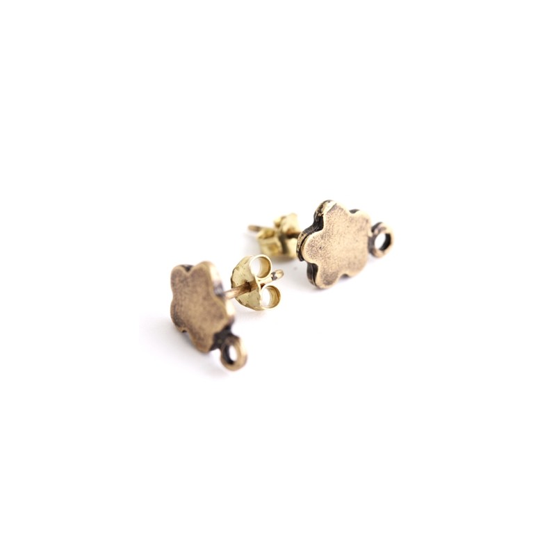 Boucle d’oreille daisy avec bague en zamac avec vieux bain doré. Le sac contient 1 paire de boucles d’oreilles. La taille est de 10x14 mm. et la perceuse à anneau est de 2 mm.