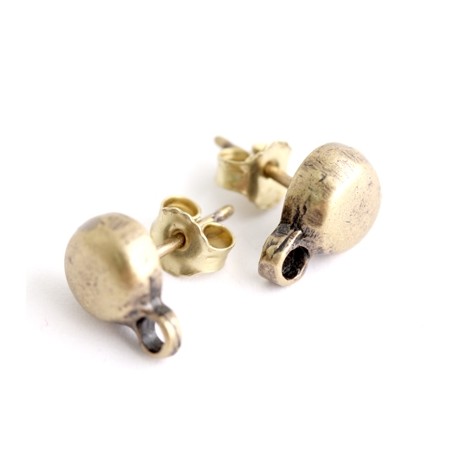 Boucle d’oreille demi-boule avec bague zamac avec vieux bain doré. Le sac contient 1 paire de pistes avec leurs Poussoirs - Poussettes. La taille de la balle est de 8 mm. et la perceuse à anneau est de 2 mm.