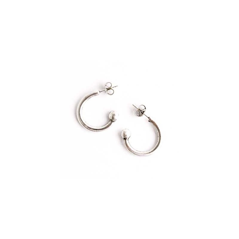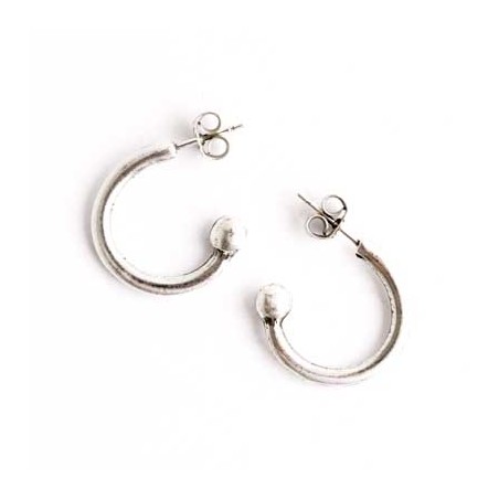 Boucle d’oreille créole en zamac avec argenté. Le sac contient 1 paire de pistes avec leurs Poussoirs - Poussettes. Le diamètre est de 18 mm.