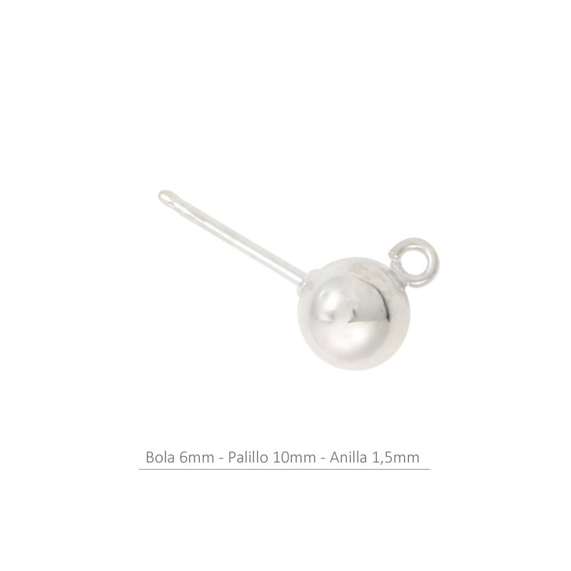 Boucles d’oreilles en boule 6 mm. avec bague et Poussoirs - Poussettes