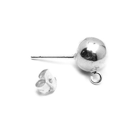 Boucles d’oreilles en boule 7 mm. avec bague et Poussoirs - Poussettes