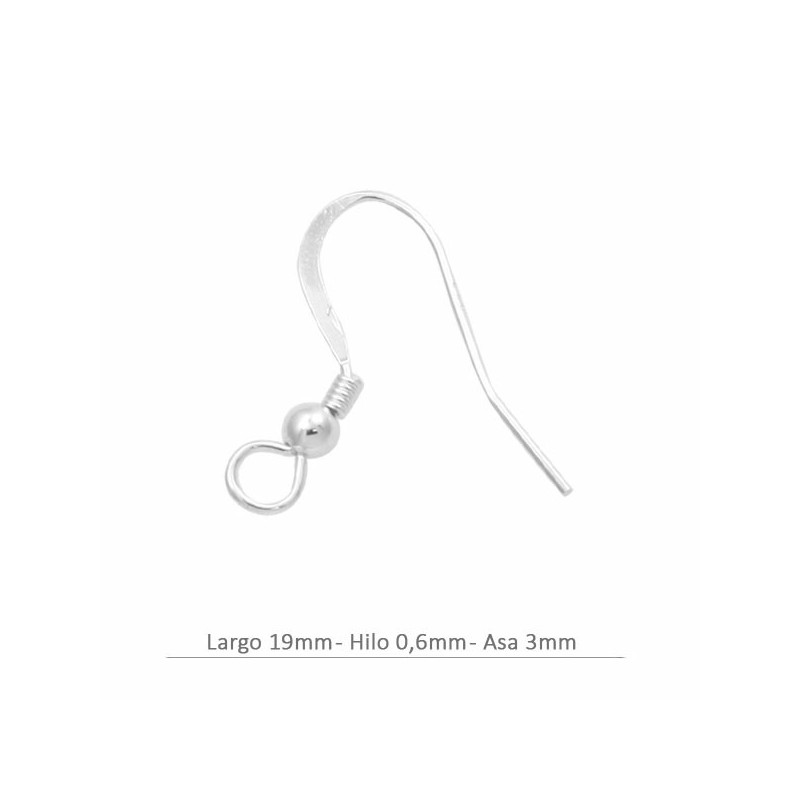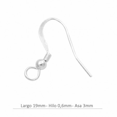 Crochet avec ressort, boule et bague, en argent 925. Le sac contient 2 unités. La taille est de 19x12 mm. et la bague est de 2 mm.