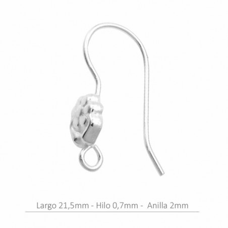 Crochet avec fleur et bague, en argent 925. Le sac contient 2 unités. La taille est de 22x14 mm. et la bague est de 2 mm.