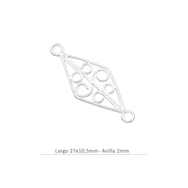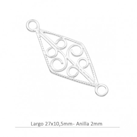 Pente intercalaire avec 2 bagues, en argent 925. Le sac contient 2 unités et la taille est de 27x11 mm.