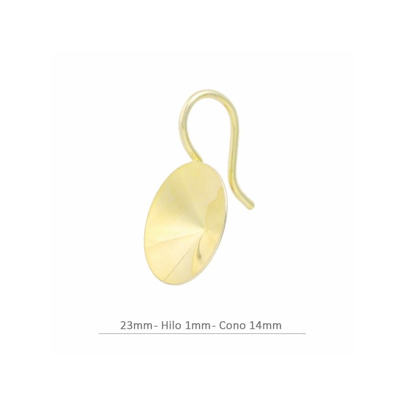 Paire de boucles d’oreilles crochet en argent 925 baignées en or 18 carats avec cône de 14mm dans la zone inférieure pour les cristaux ronds Swarovski modèle rívoli.