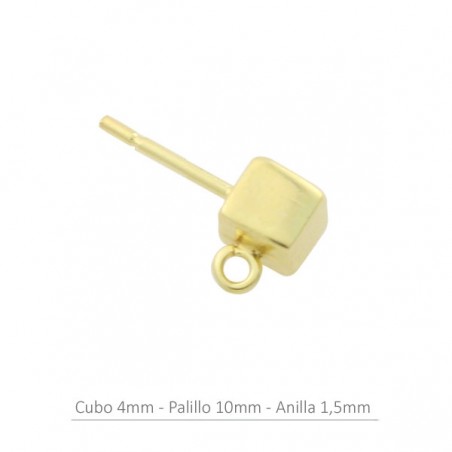 Boucle d’oreille cube 4mm avec bague, argent avec un placage or. Le sac contient 2 unités. La taille du cube est de 4 mm.