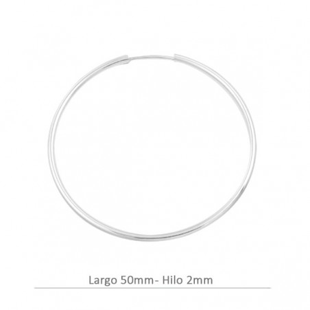 Créole en argent 925. Le sac contient 2 unités. Le diamètre est de 50 mm. et le filetage est de 2 mm.