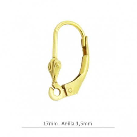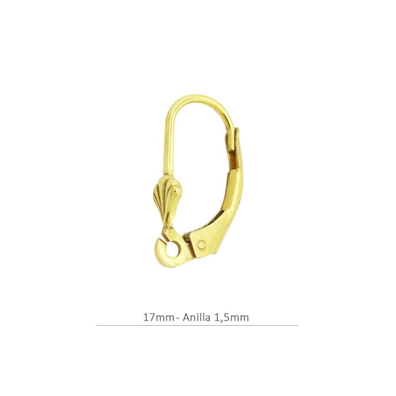 - Crochet en goutte d’eau avec dents en argent 925 avec placage or. - La taille est de 17 millimètres et a un anneau de 1,5 millimètres. - Le prix est par sac et le sac contient deux unités.