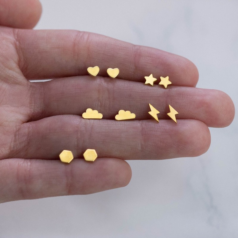 - Mini boucle d’oreille hexagonale en argent argent 925 doré. - Taille de 4 millimètres et cure-dent de 10 mm. - Le sac contient 2 unités et 2 Poussoirs - Poussettes.