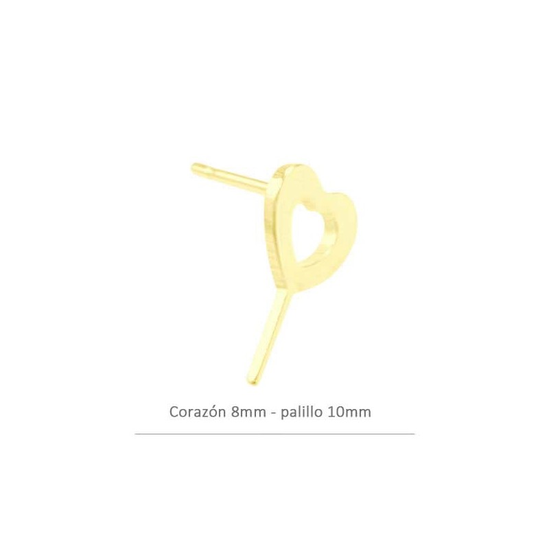 Boucle d’oreille en cœur ajouré de 8 mm en argent argent 925 doré avec cure-dent inférieur.