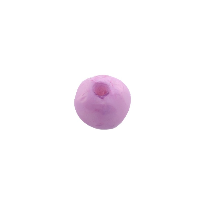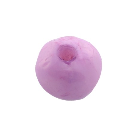 - Boule de résine de couleur lilas. - Taille de 12 à 14 millimètres. - Perceuse 3 millimètres. - Base plate et forme irrégulière.