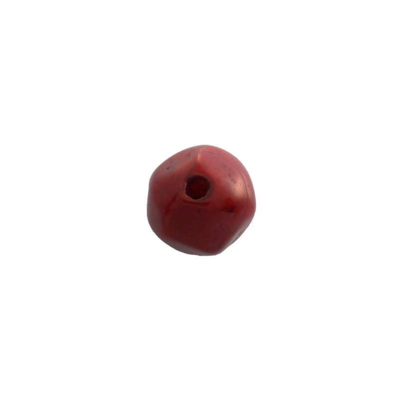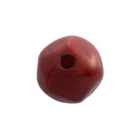 - Boule de résine de couleur marron. - Taille de 12 à 14 millimètres. - Perceuse 3 millimètres. - Base plate et forme irrégulière.