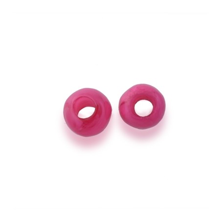 - Boule de résine de couleur fuchsia. - Taille 7 mm. - Perceuse 3 mm. - Base plate et forme irrégulière. - Le sac contient 10 unités et le prix est par sac.