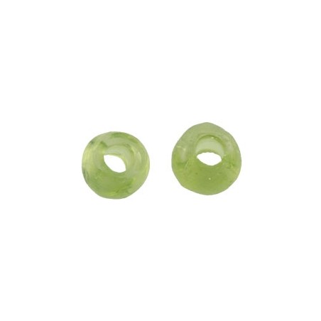 - Boule de résine vert lime. La base est plate et la forme irrégulière. - La taille est de 7 millimètres et la perceuse de 3 millimètres. - Le prix est par sac et le sac contient 10 unités.