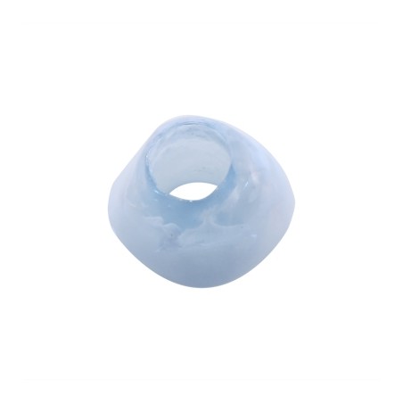 - Boule de résine de museau de couleur bleu clair. - Taille de 9 à 12 millimètres. - Perceuse 5,5 millimètres. - Base plate et forme irrégulière. - Le prix est par sac et le sac comprend deux unités.