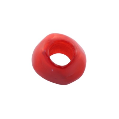 - Boule de résine slouted en rouge. - Taille de 9 à 12 millimètres. - Perceuse 5,5 millimètres. - Base plate et forme irrégulière. - Le prix est par sac et le sac comprend deux unités.