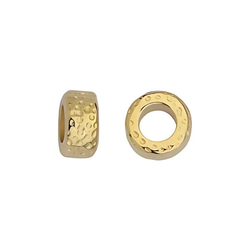 Donut rugueux de 10 mm. Trou de 5 mm. Plaqué or.