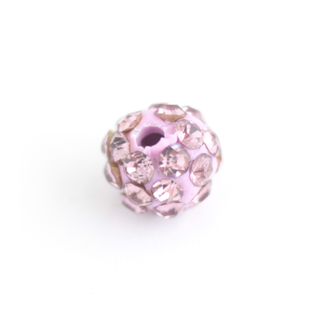 Boule de 8 mm. avec strass violet. Perceuse intérieure de 1,5 mm. Le sac contient 1 unité.