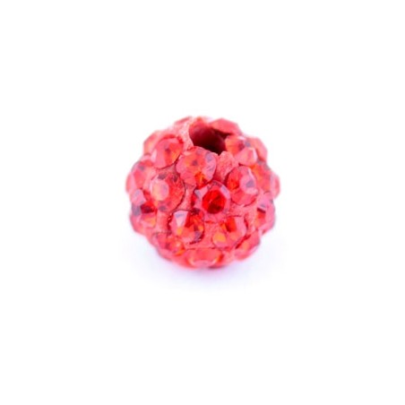 Boule avec des cristaux incrustés Swarovski de 8 millimètres. Perceuse 1,5 millimètre. Couleur Siam. Le sac contient 1 unité