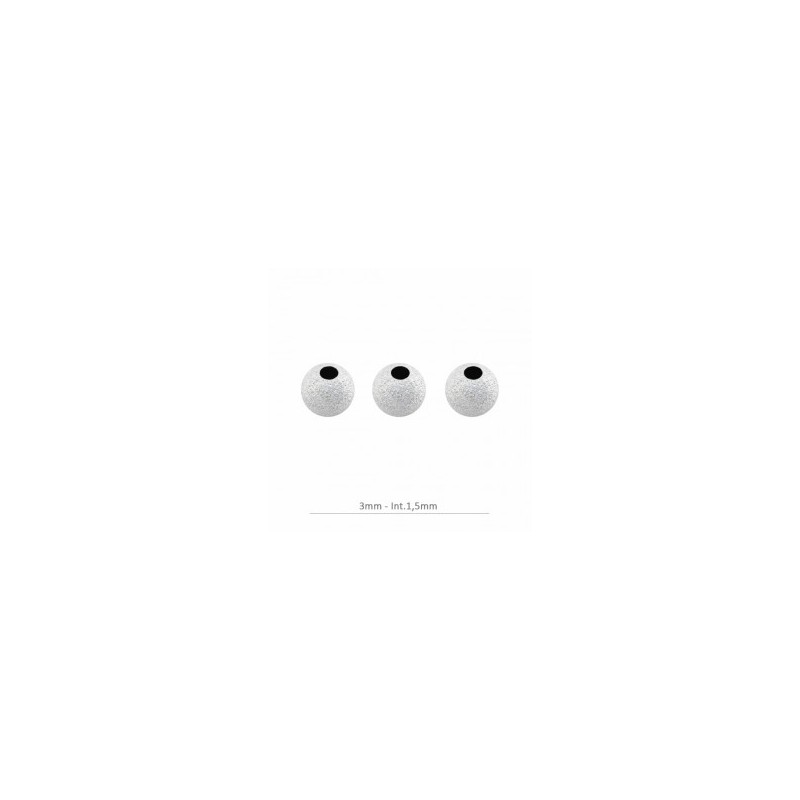 Boule granulée, en argent 925. Le sac contient 6 unités. Le diamètre extérieur est de 3 mm et le diamètre intérieur est de 1,5 mm.
