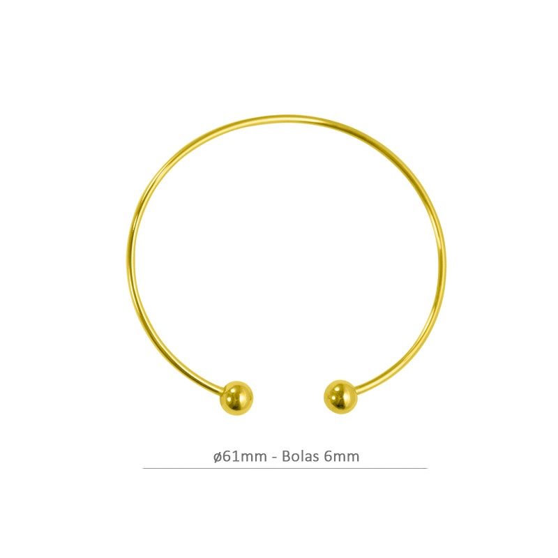 - Bracelet en laiton réglable avec bain d’or, avec deux boules de 6mm avec filetage. Bain d’or - Le prix est par unité.