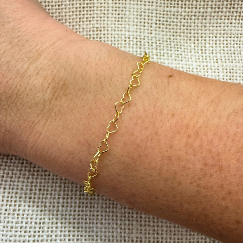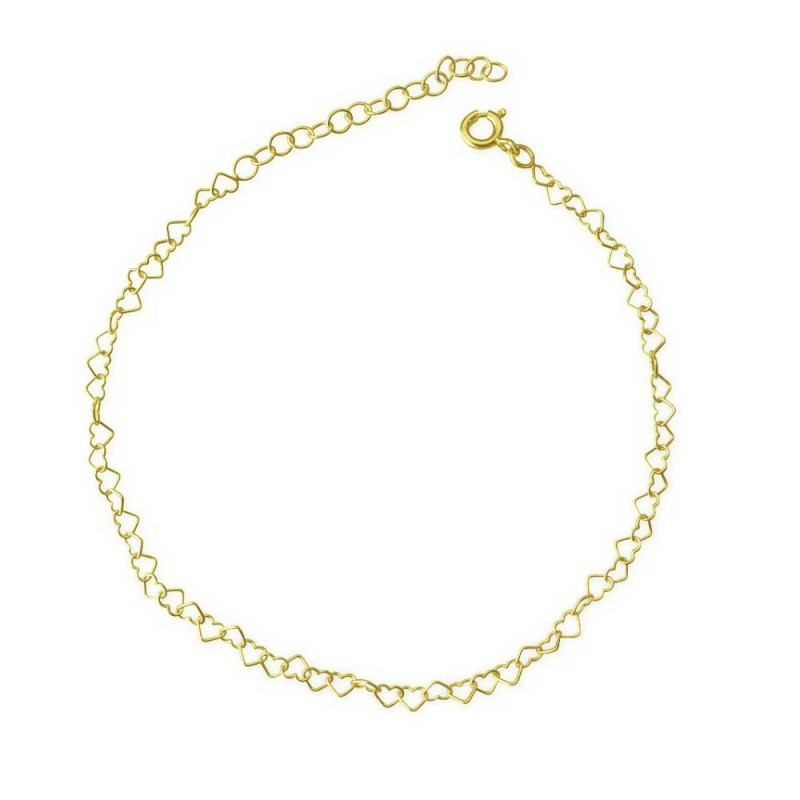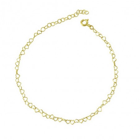 Bracelet de cœurs 15 cm + rallonge. Argent 925 plaqué or