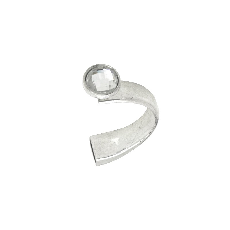 Demi-bracelet avec verre et grande perceuse dans zamac avec argenté. Le sac contient 1 unité. La taille est de 63x12 mm. et la perceuse est de 10x5 mm.