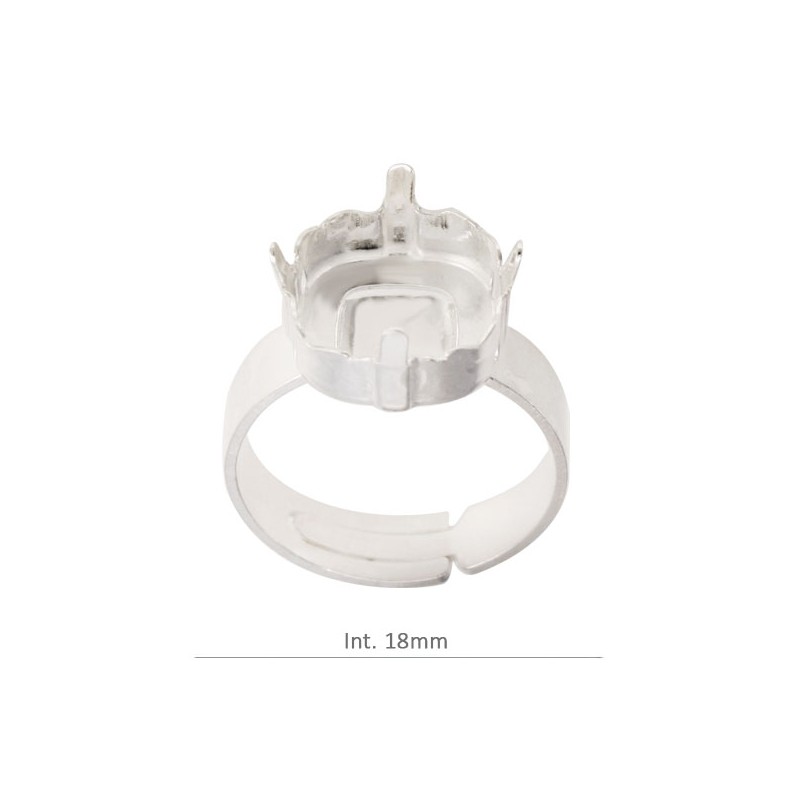 Bague en argent 925 avec griffe carrée de 12 mm dans la partie supérieure spécialement conçue pour les cristaux Swarovski carrés de 12 mm.