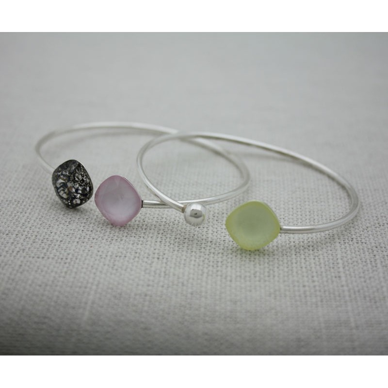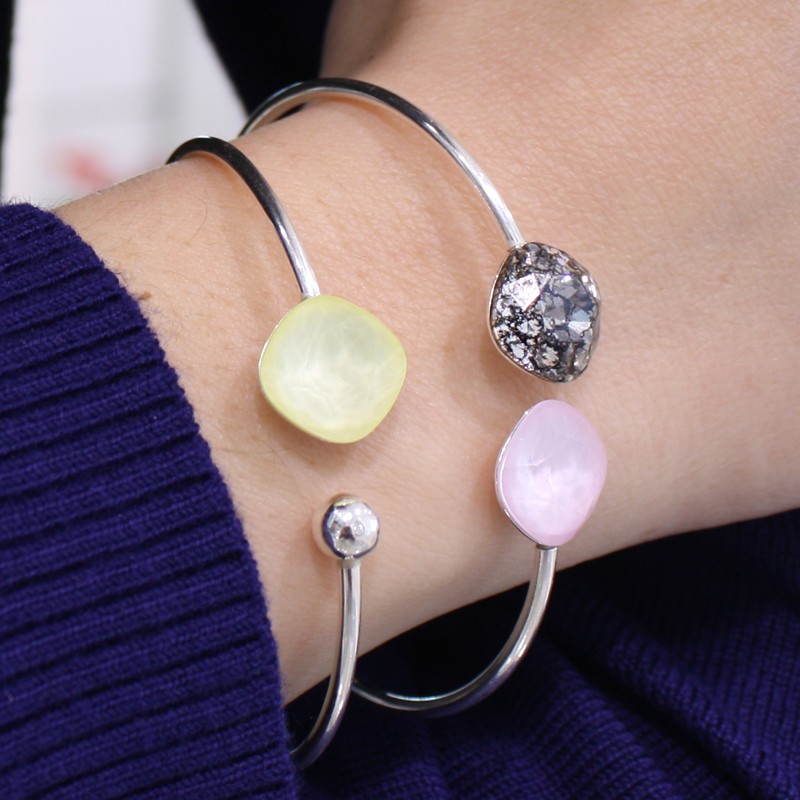 Bracelet en argent 925 avec lunette carrée de 12mm sur un côté spécialement conçu pour les cristaux ronds Swarovski modèle carré de 12mm. Il a une boule de 4 mm de l’autre côté.