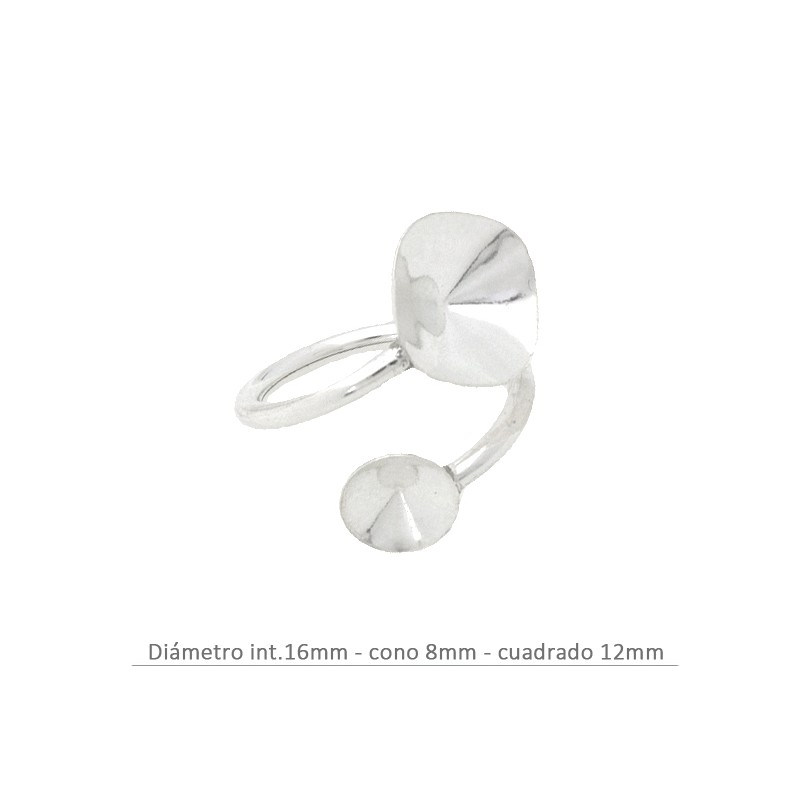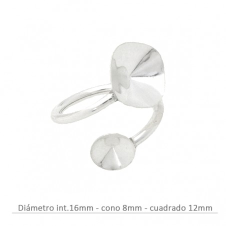 - Bague en argent 925. - Spécialement conçu pour les rívoli de 8 mm de Swarovski Elements (1122 SS39) et pour cabochon de 12 mm (4470/12mm). - La taille extérieure est de 20 millimètres et la taille intérieure est de 16,5 millimètres. - Le prix est par unité.
