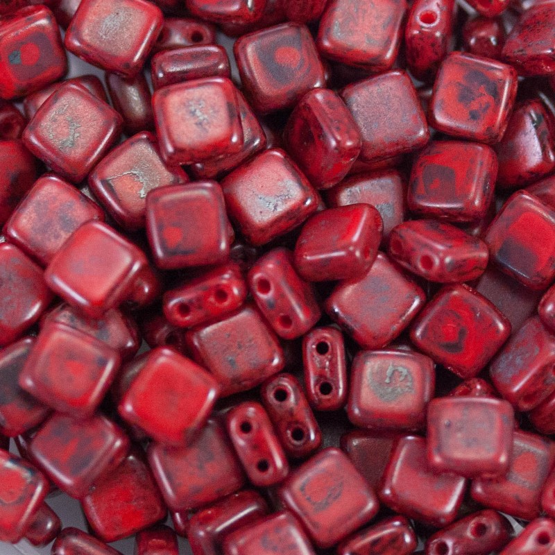 Perles carrées 2 trous 6mm. Réseau picasso opaque