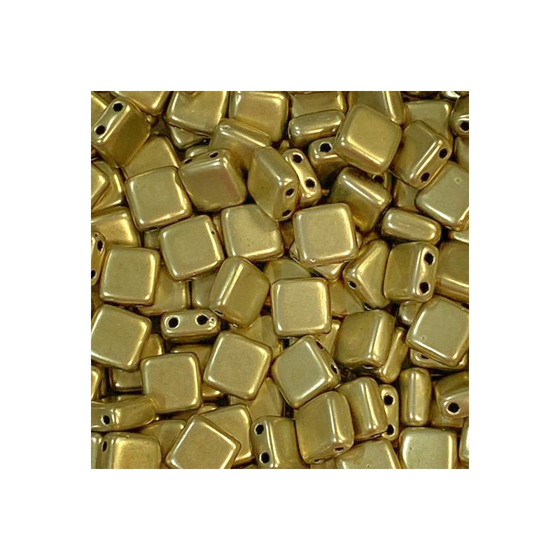 Perles carrées 2 trous 6mm - Metallic Olive Light