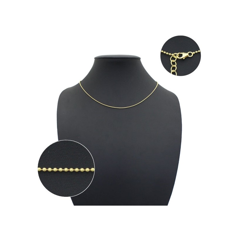 Chaîne à billes argent 925 doré 1.5mm-45cm + 5cm