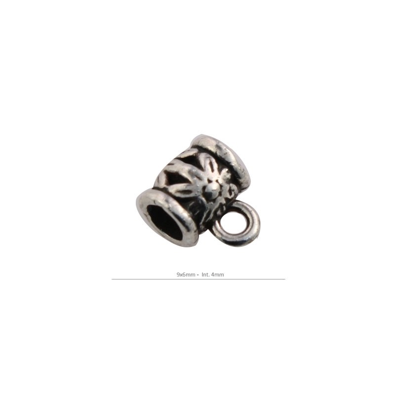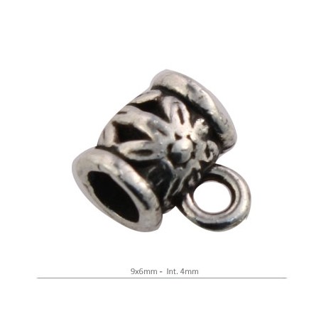 - Attache Pendentif dans zamac argenté. - La taille est de 9x6 millimètres. - L’écart de la attache pendentif est de 4 millimètres. - Le prix est par sac et le sac comprend deux unités.