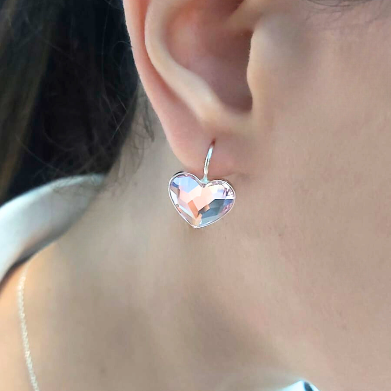 • Si vous choisissez l'option AVEC CRISTAUX SWAROVSKI vous choisissez deux boucles d'oreilles crochets et 2 unités de cristaux coeur Swarovski de 14 mm à coller selon la couleur sélectionnée.