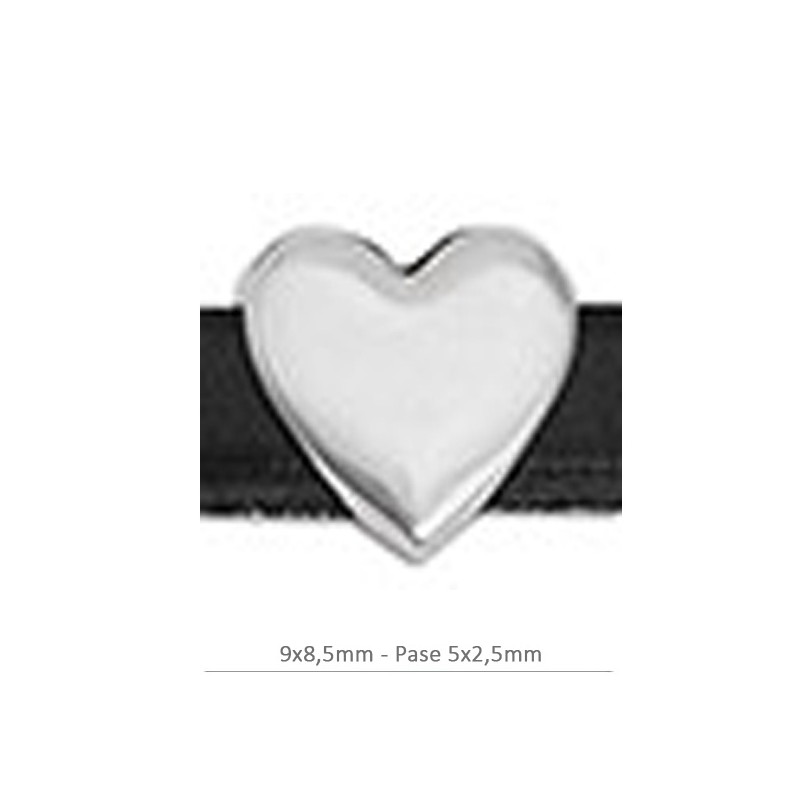 Intercalaire de cœur pour cuir plat de 5x2,5mm. Zamac argenté