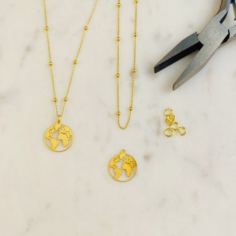 Créez votre propre pendentif le monde dans argent 925 ou dans argent 925 baigné d’or 18 carats. Tous les matériaux sont fabriqués en Espagne.