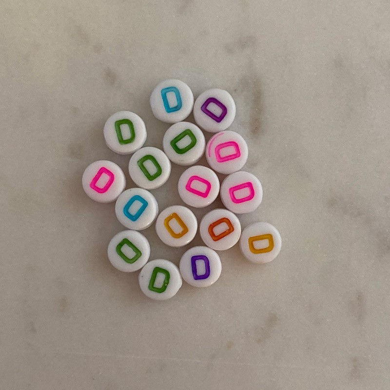 Lettre en plastique D couleur être dit. Vente par sac, le sac contient 1 unité.