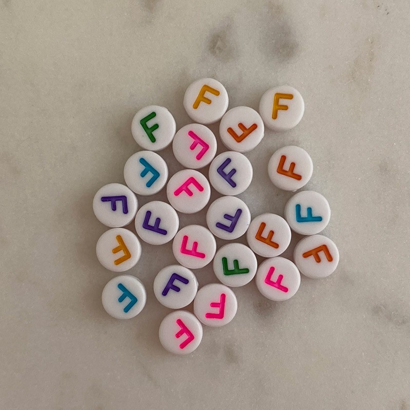 Lettre en plastique F couleur être dit. Vente par sac, le sac contient 1 unité.