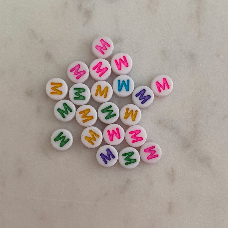 Lettre en plastique M couleur être dit. Vente par sac, le sac contient 1 unité.