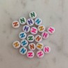 Perle de couleur lettre N en plastique. Vente par sac, le sac contient 1 unité.