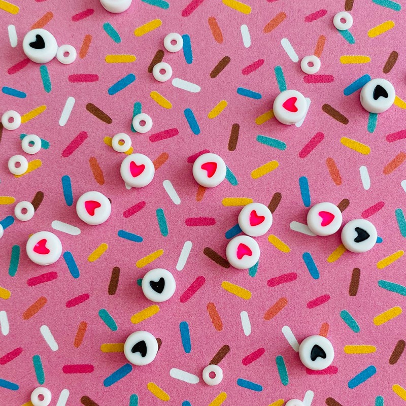 Abeille à cœur rose. Diamètre 8mm. Perceuse 1mm