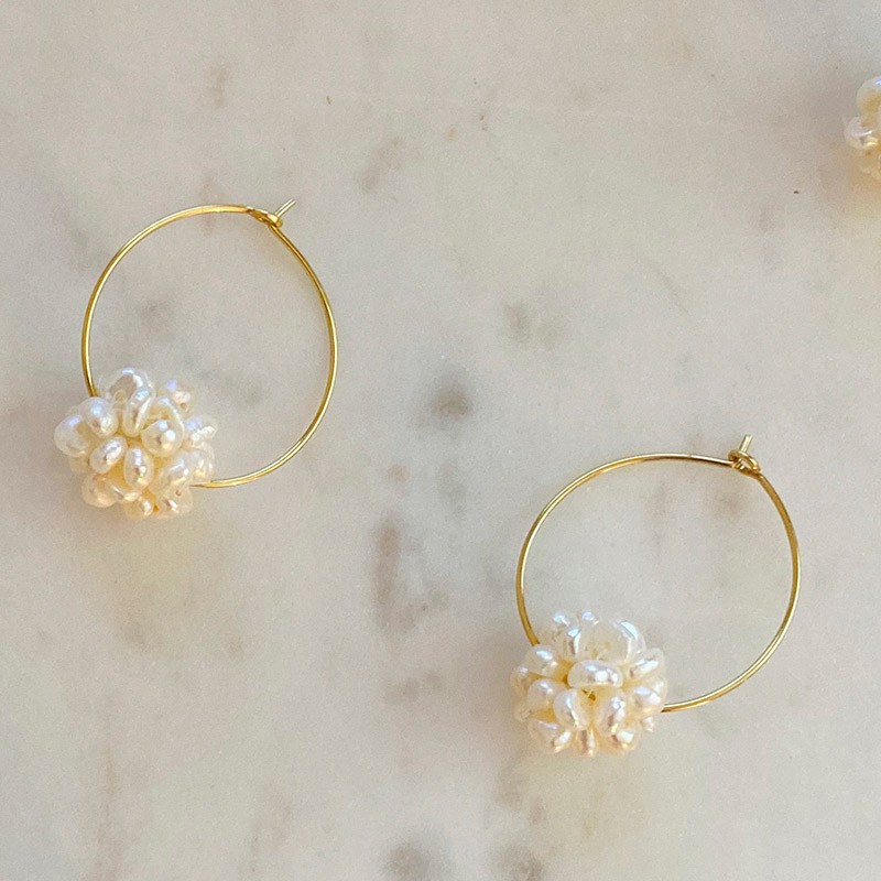 Créez vos propres boucles d’oreilles avec des boules de perles d’eau douce dans argent 925 ou dans argent 925 baignées d’or 18 carats. Tous les matériaux sont fabriqués en Espagne.
