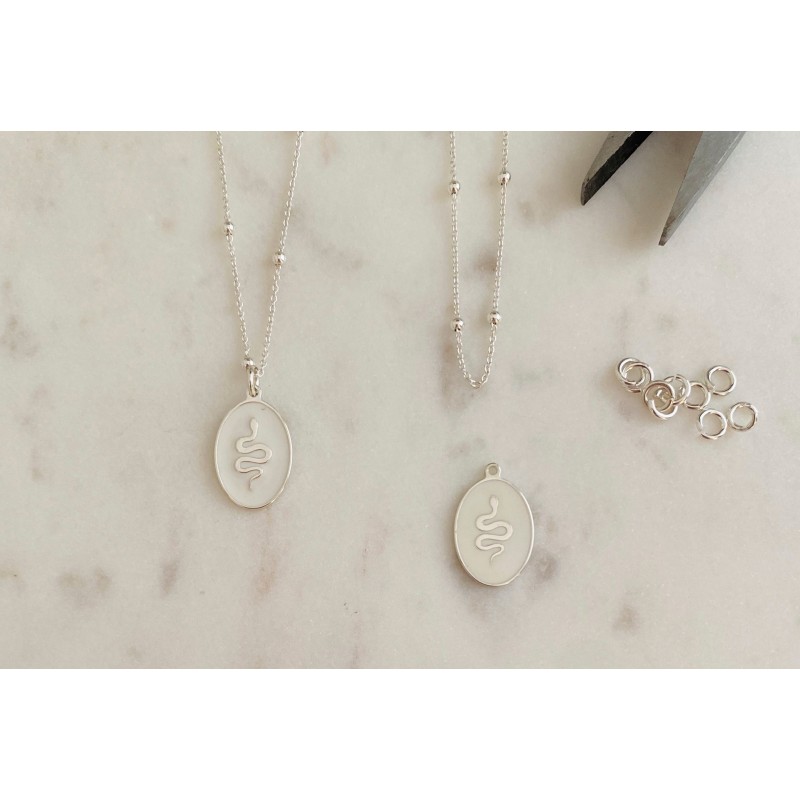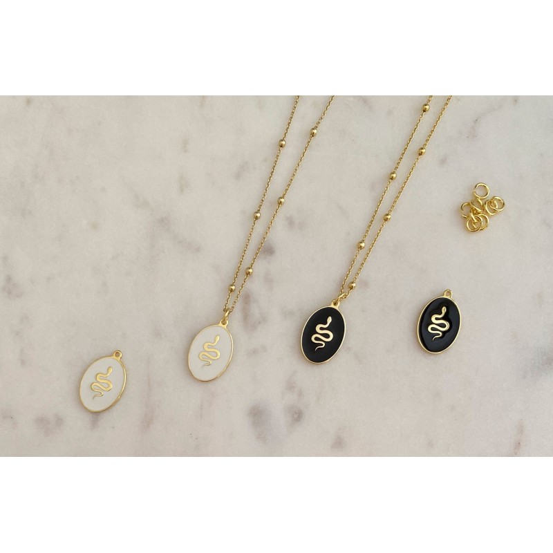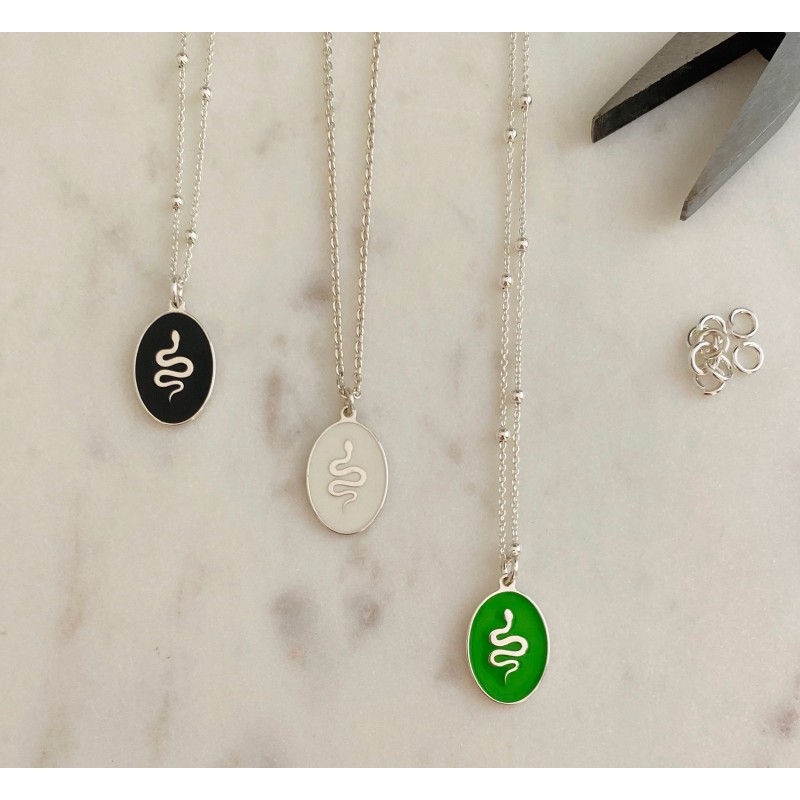 * Pendentif serpent ovale émaillé en blanc en argent ou en argent 925 doré selon le choix.