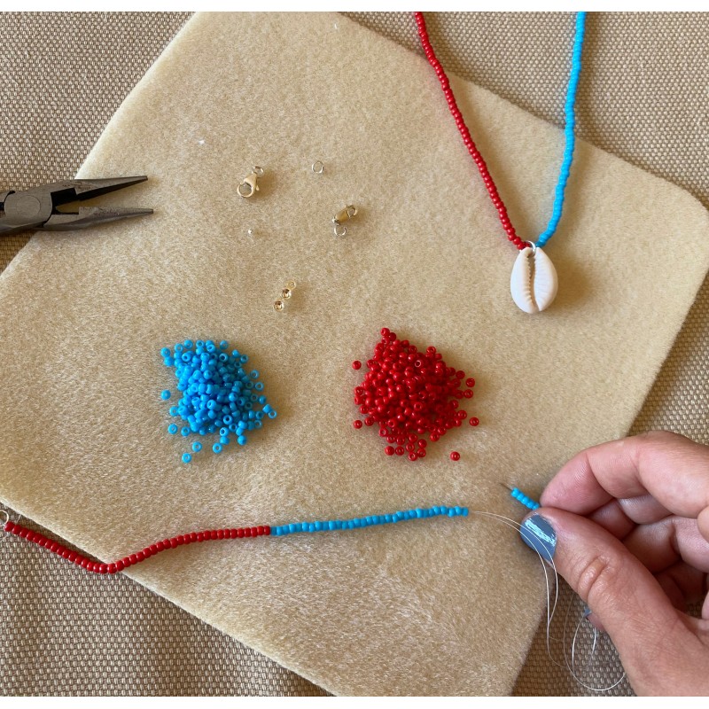 * 2 couleurs rocaille 8/0 dans les couleurs choisies. 1 paquet de 5 grammes de chaque couleur.