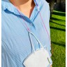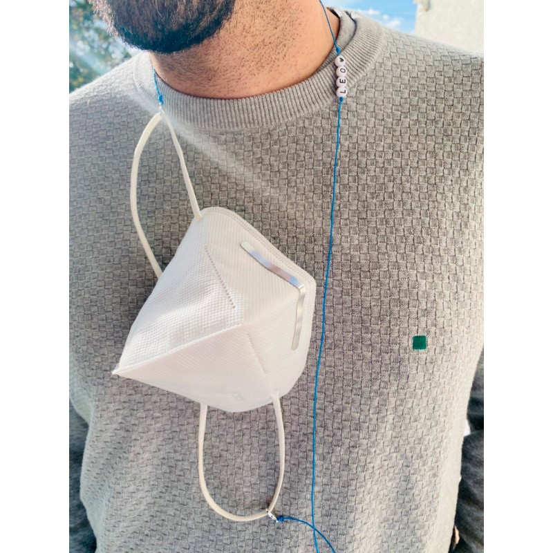2. Nous passons le cordon à travers le trou de chaque mousqueton. Et nous faisons un nœud glissant. À ce stade, nous ajustons la longueur souhaitée des masques suspendus.