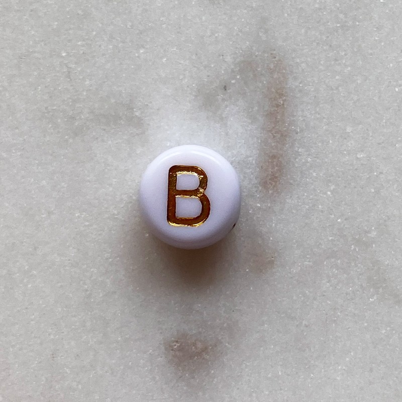 Perle de couleur dorée lettre B. Diamètre 8mm. Perceuse 1mm