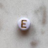 Perle de couleur dorée lettre E. Diamètre 8mm. Perceuse 1mm