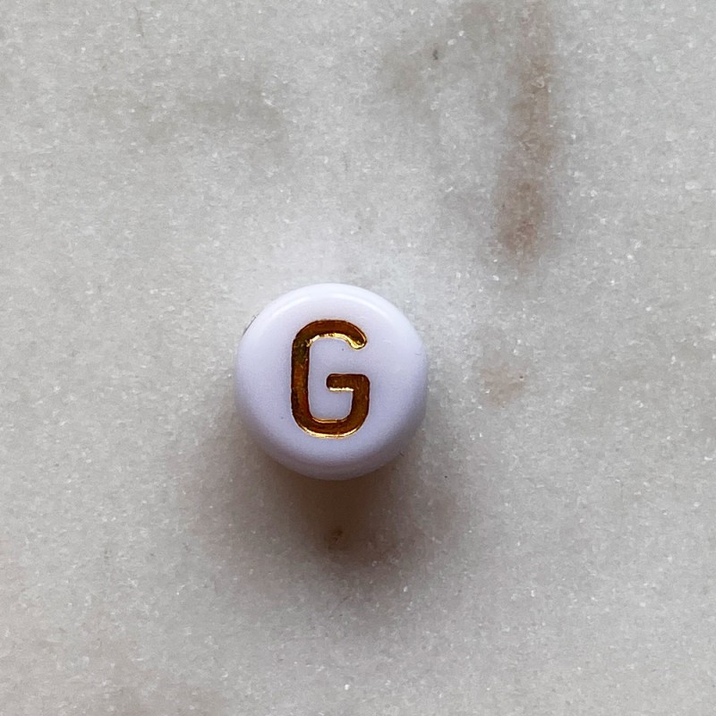 Perle de couleur dorée lettre G. Diamètre 8mm. Perceuse 1mm